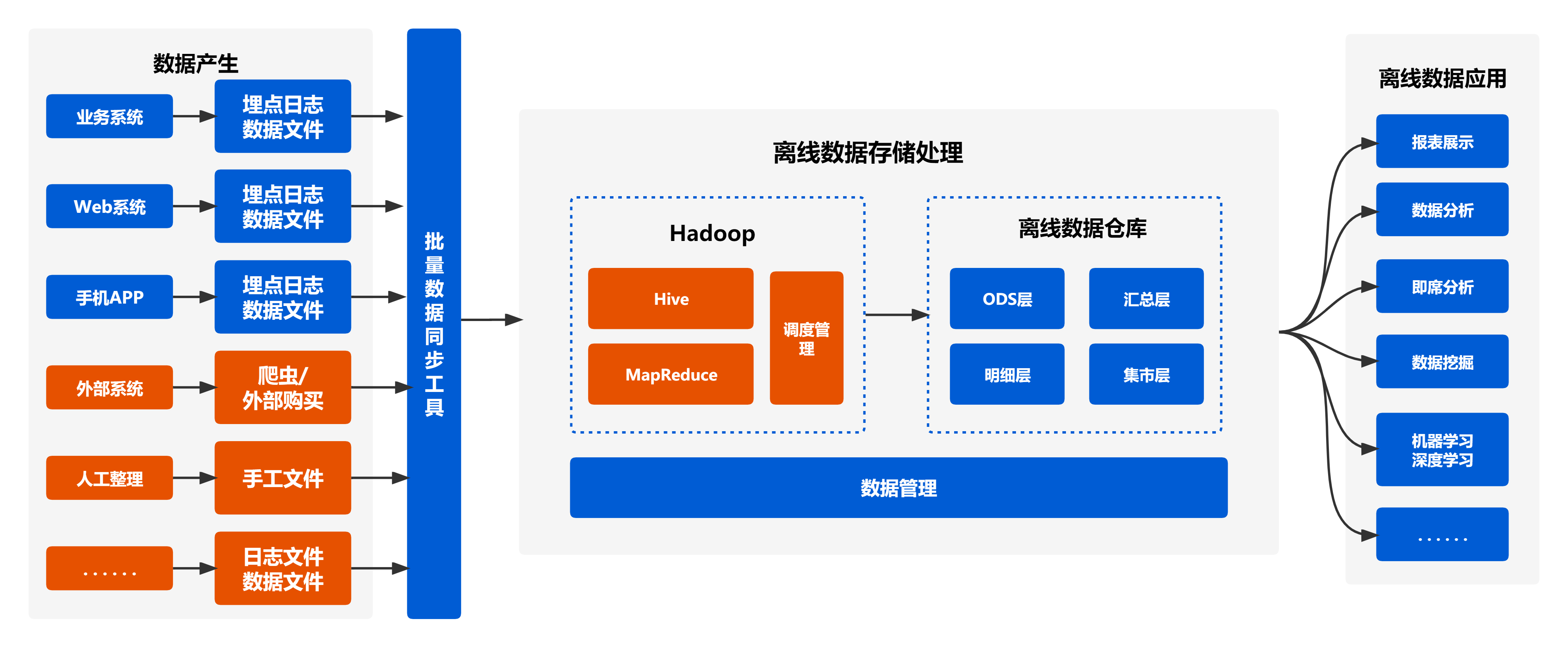 - 数据采集或产生是通过各类日志、埋点、爬虫或手工整理的方式来对需要分析的数据进行收集