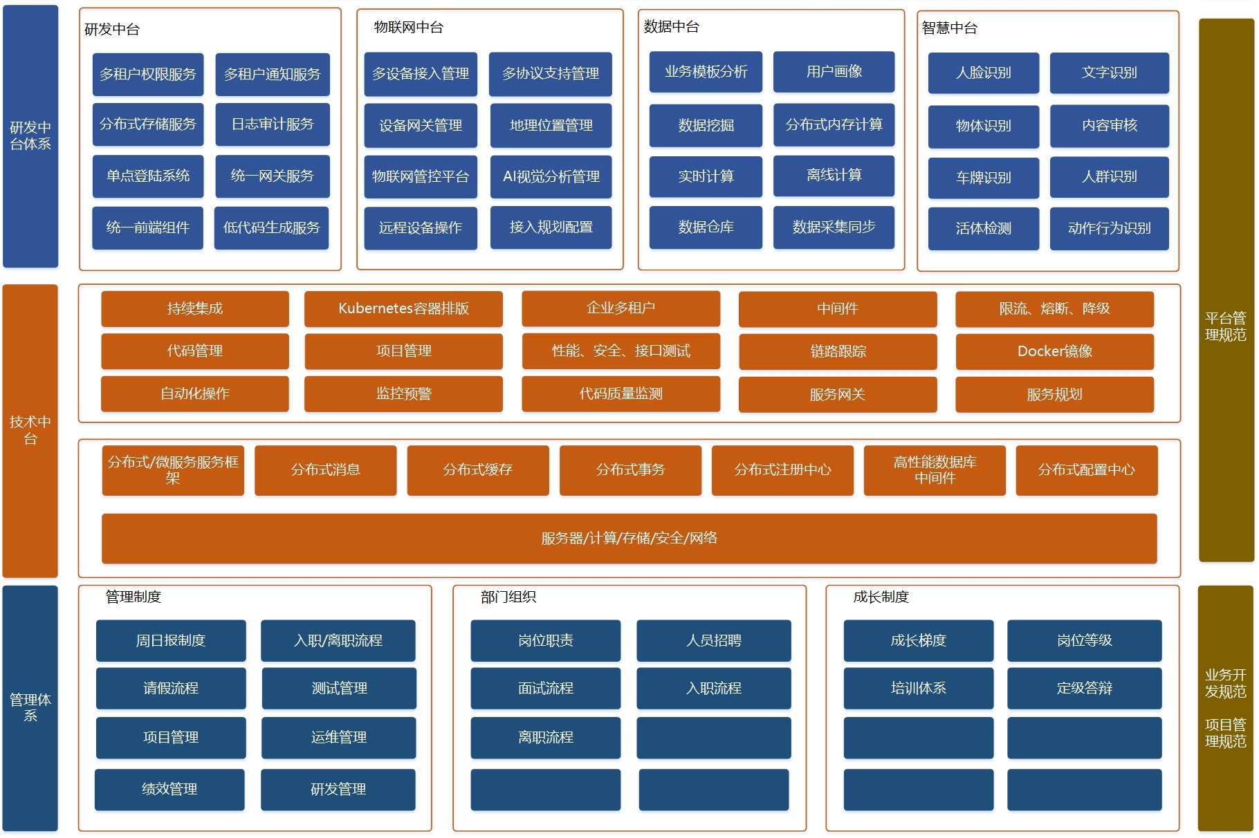 为企业全方位技术解决方案,为上层中台提供强能力的支持;