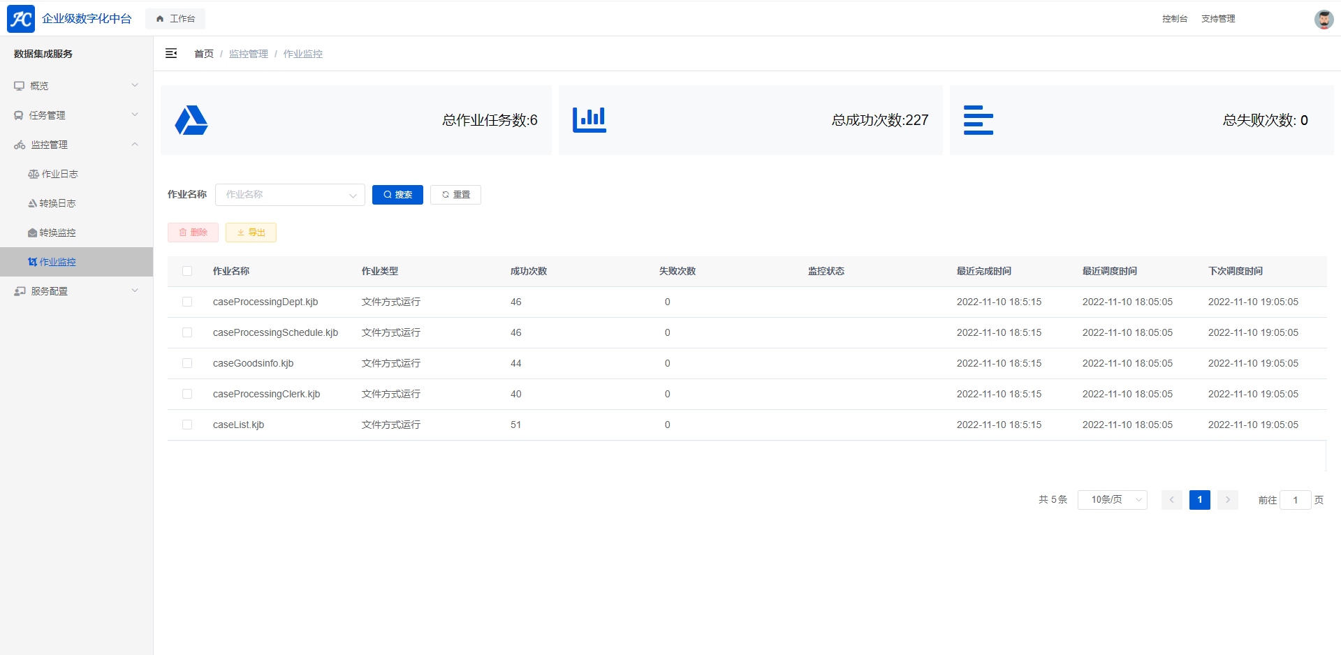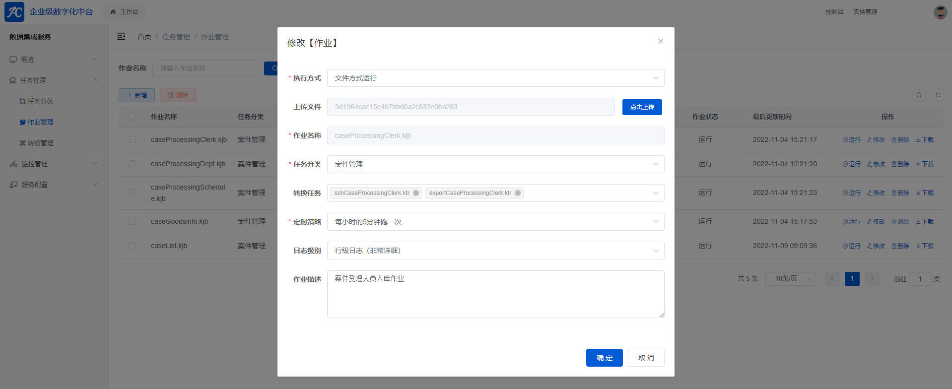 进入数据集成服务,导航到任务管理-作业管理,新增作业记录