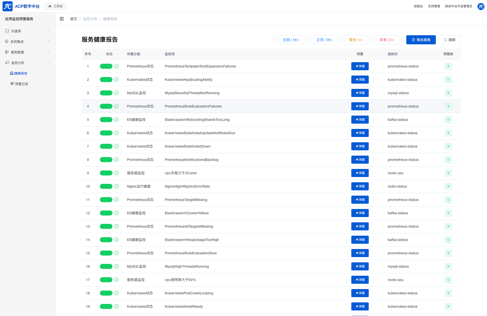 系统集成业务监控和预警效果如下: