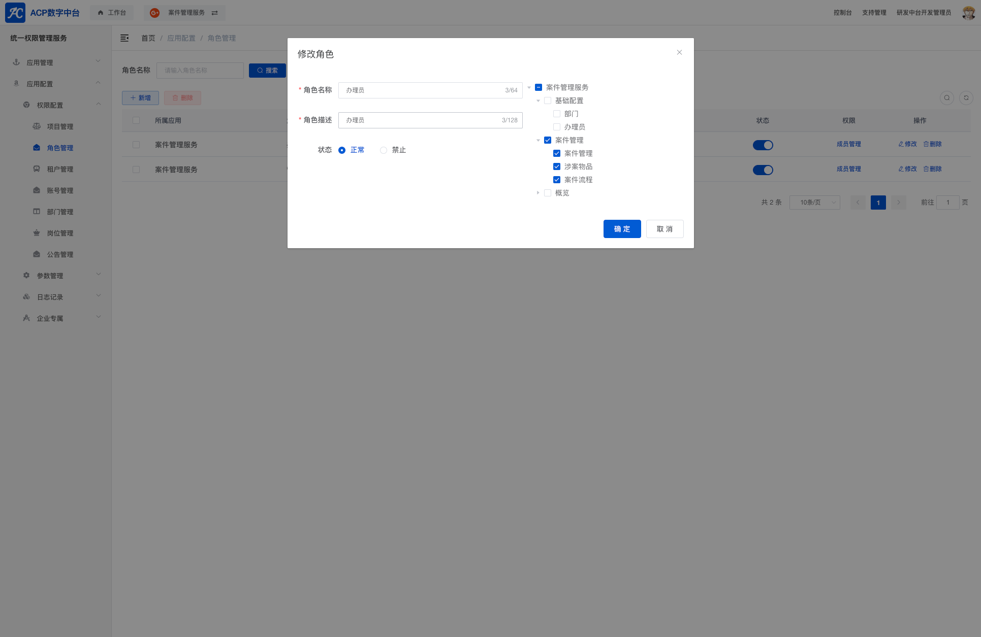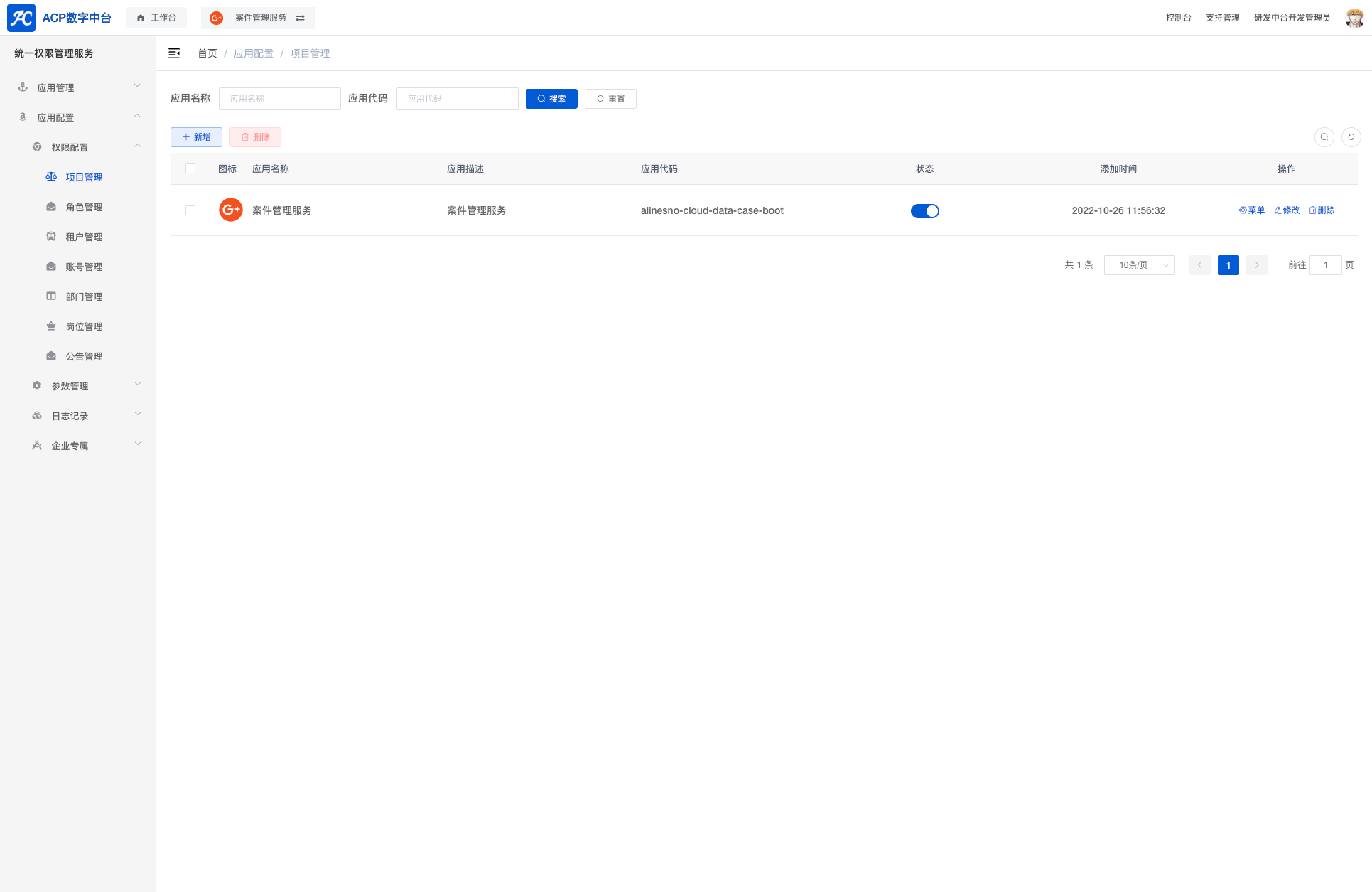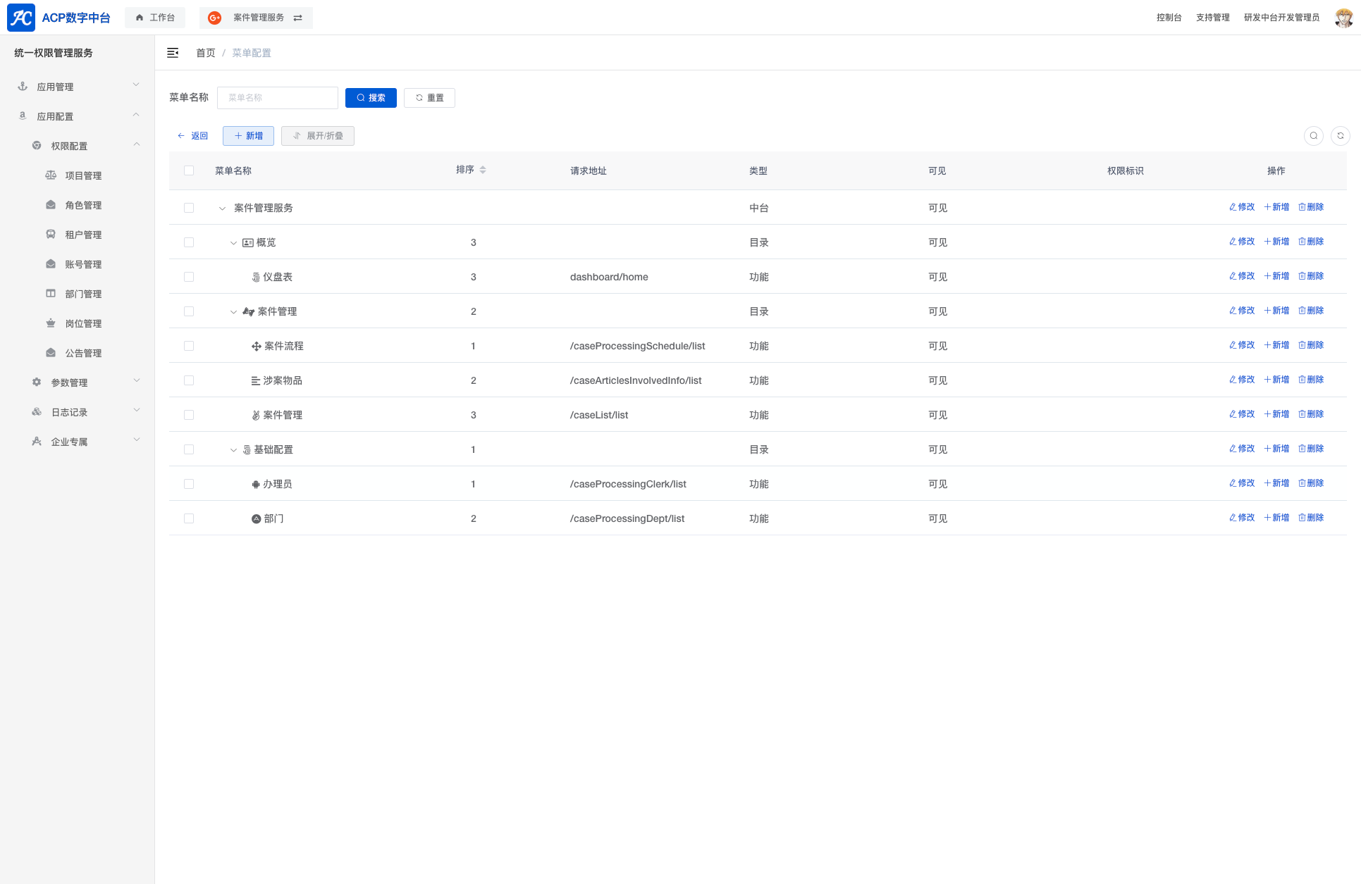 这里主要是配置案例管理系统应用名称,配置菜单管理,配置用户权限,配置如下文。