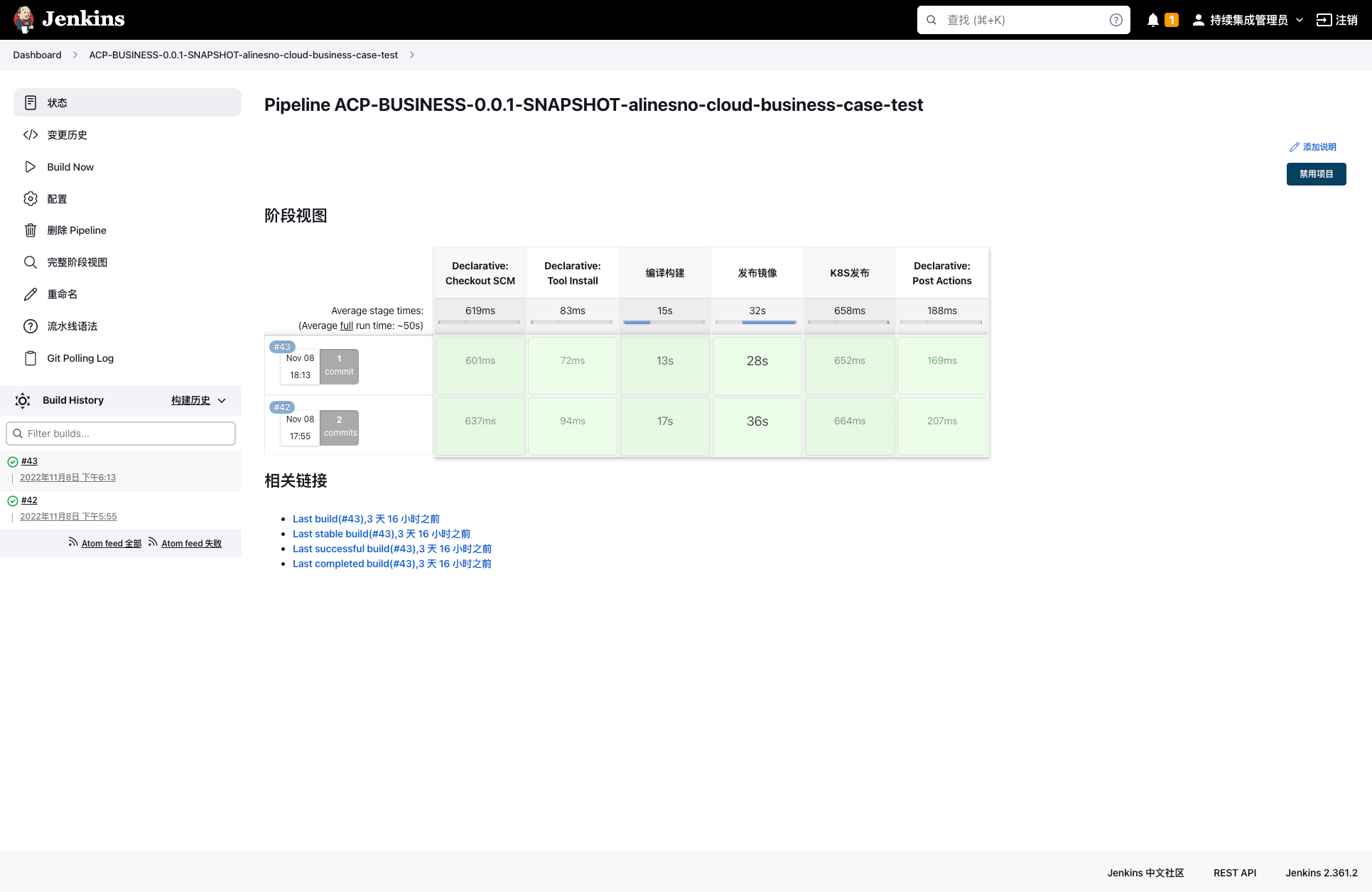 演示案例管理服务采用jenkins pipeline进行发布,将pipeline的脚本jenkinsfile放到项目中与项目进行统一管理,jenkinsfile分为两个前端发布/后端发布 布容器等操作全部用jenkinsfile进行管理。