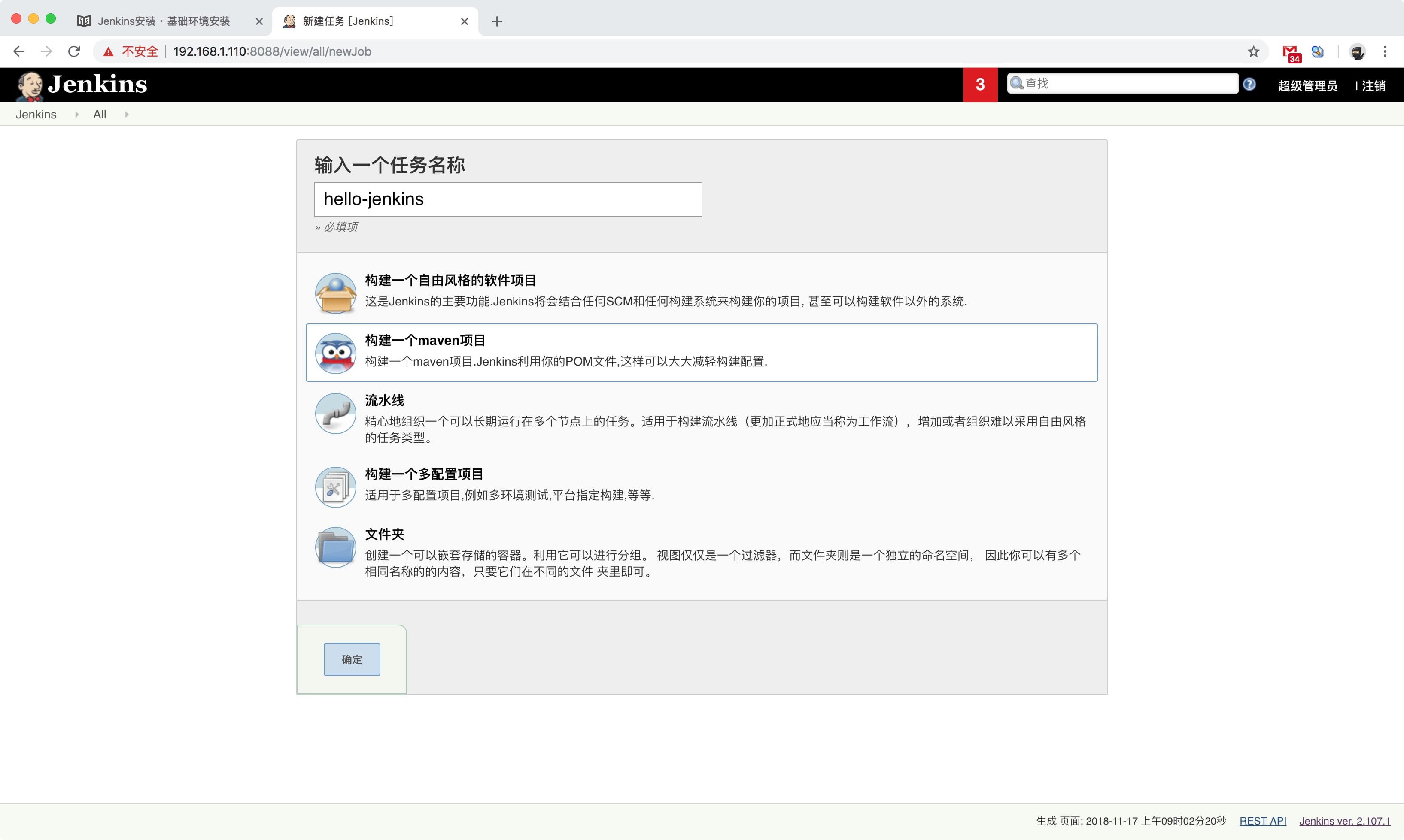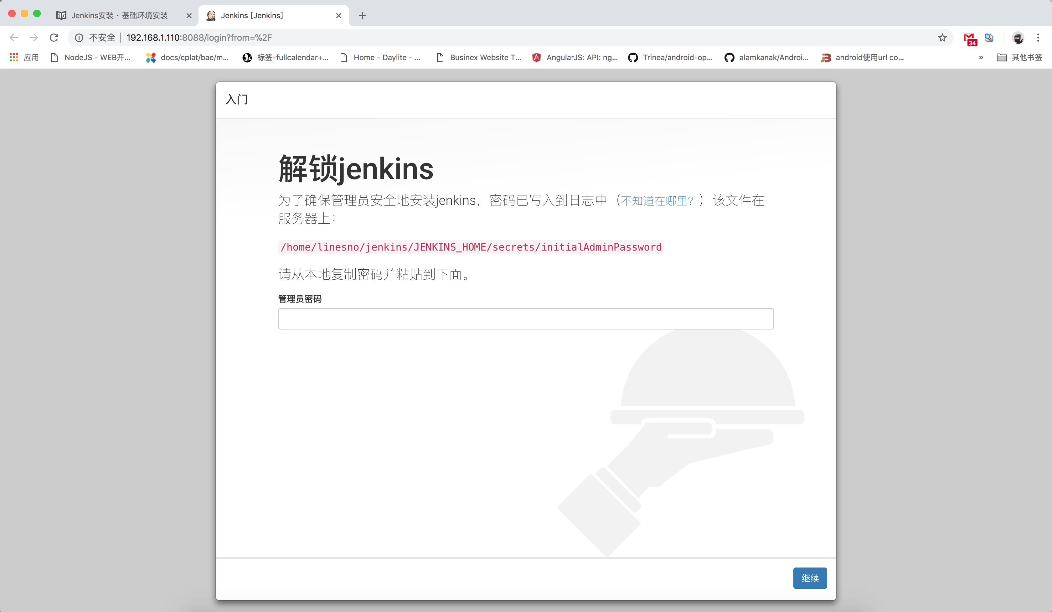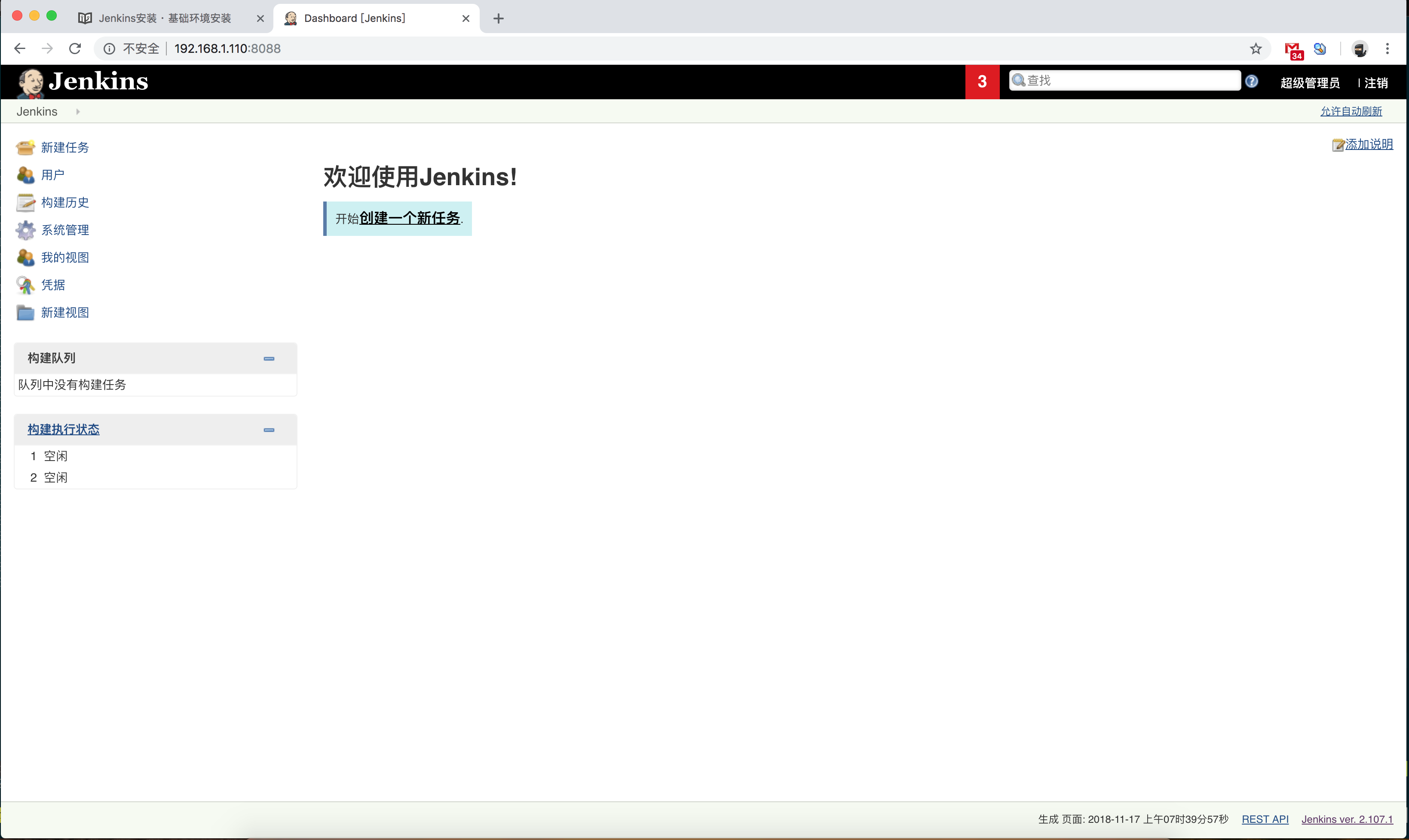 访问 jenkins,http://192.168.1.110:8088 ,显示下图: