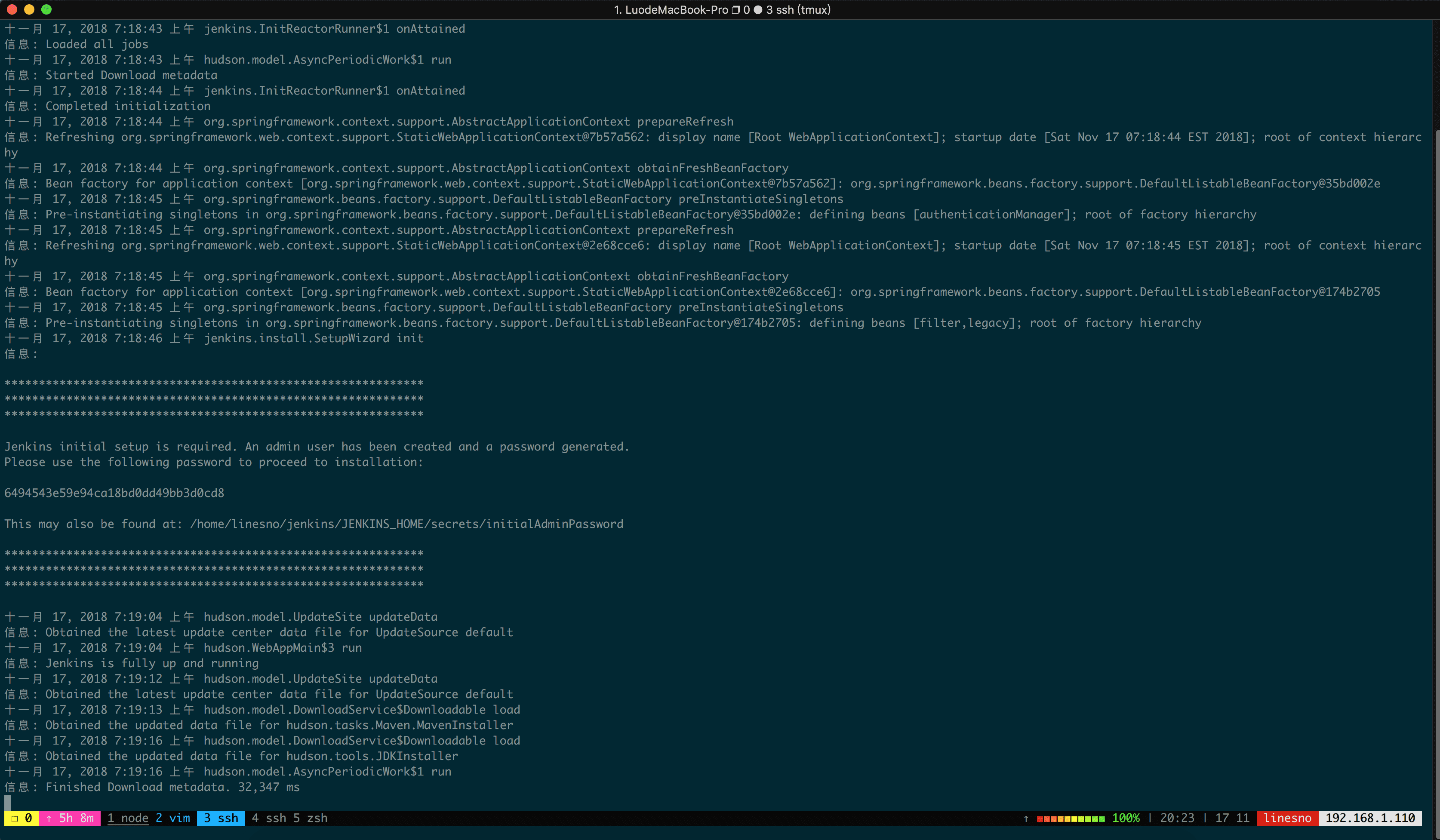cat /home/alinesno/jenkins/JENKINS_HOME/secrets/initialAdminPassword