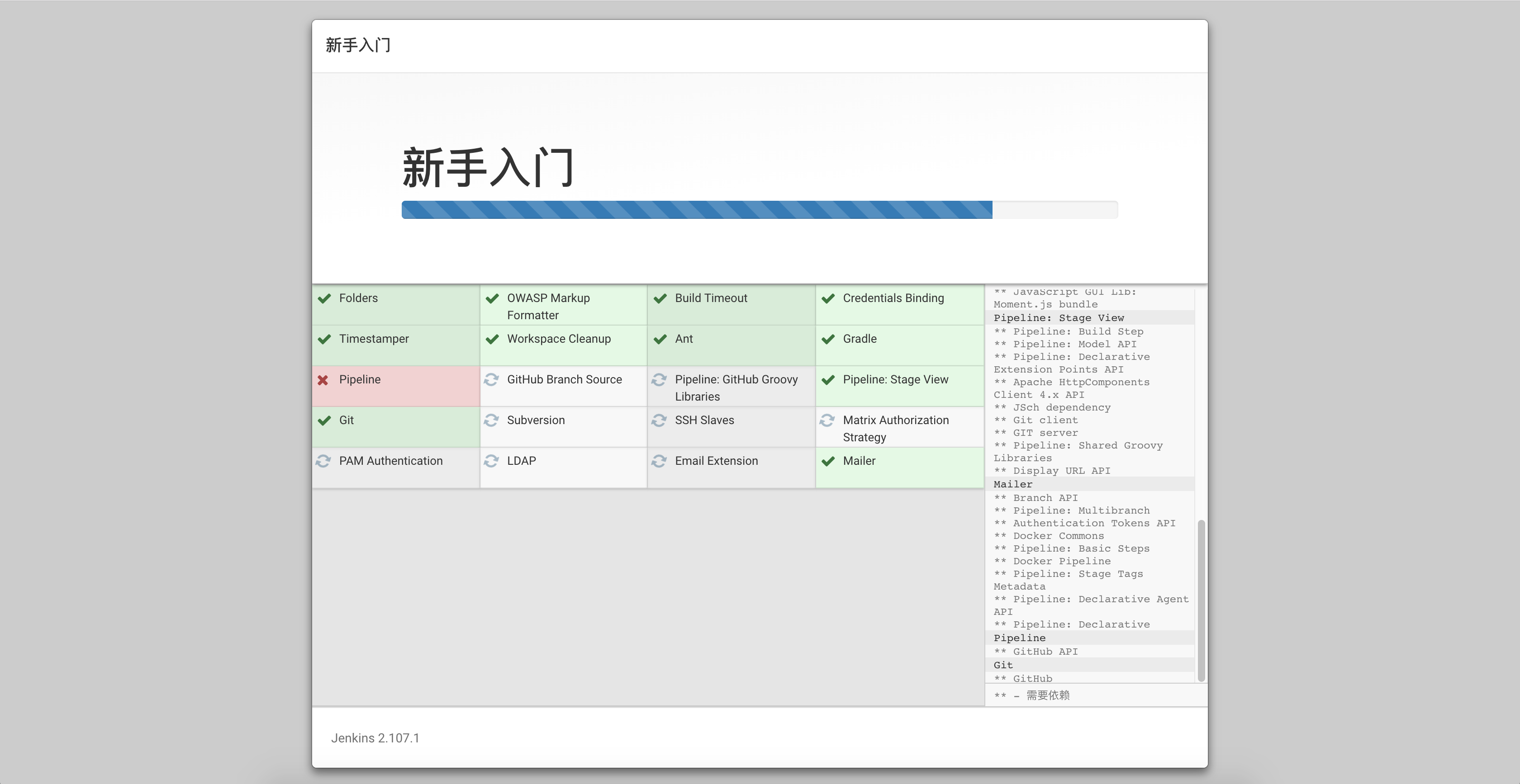 插件安装我们选择社区推荐插件即可,进入到插件安装过程时间比较长,也比较消耗服务器资源,请耐心等待.