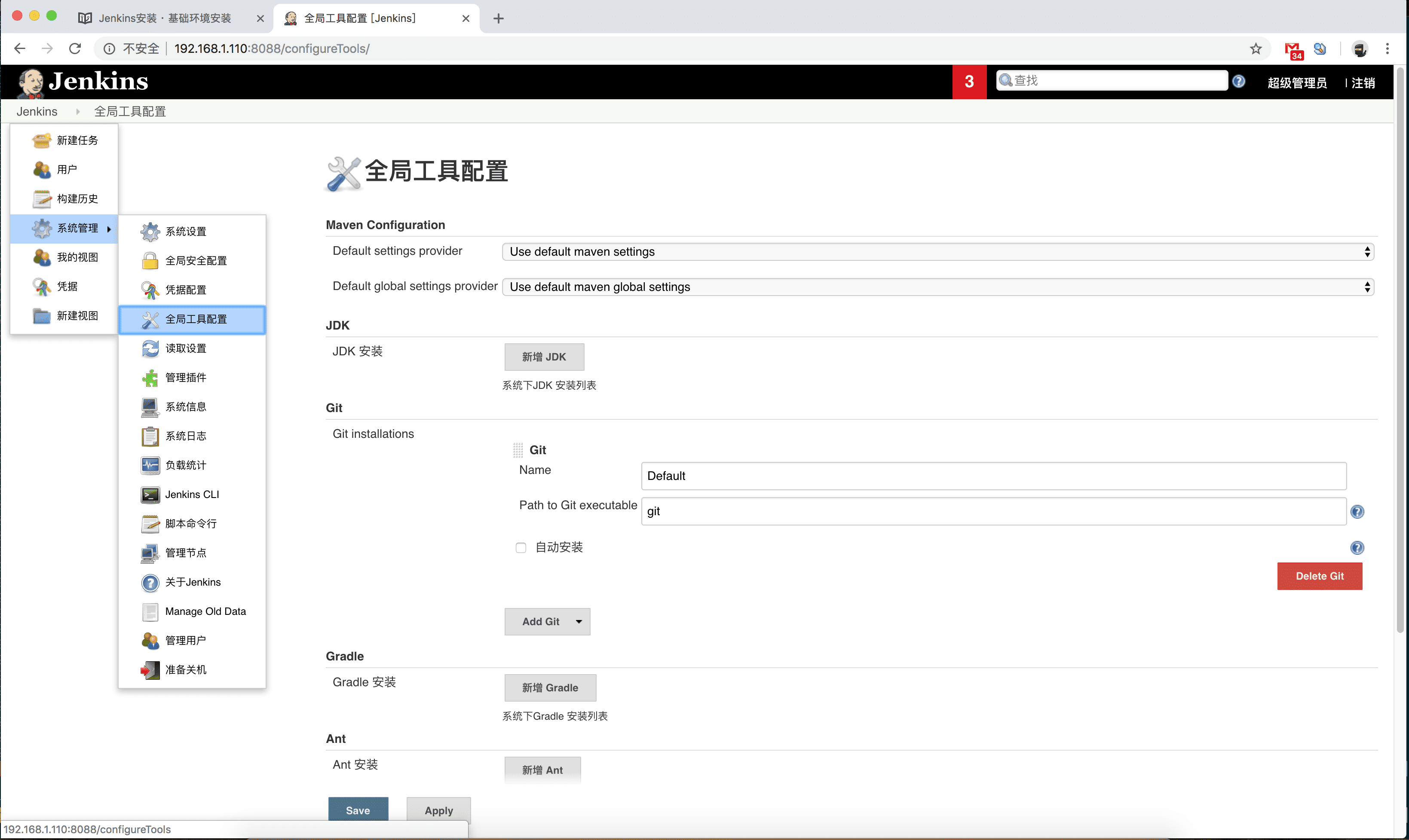 配置超级管理员,超级管理员会看到很多项目,并不合适于大型或者多项目的协助,后期我们为每个账户分配权限即可,超级管理员只用于配置,并不用于工程的发布。