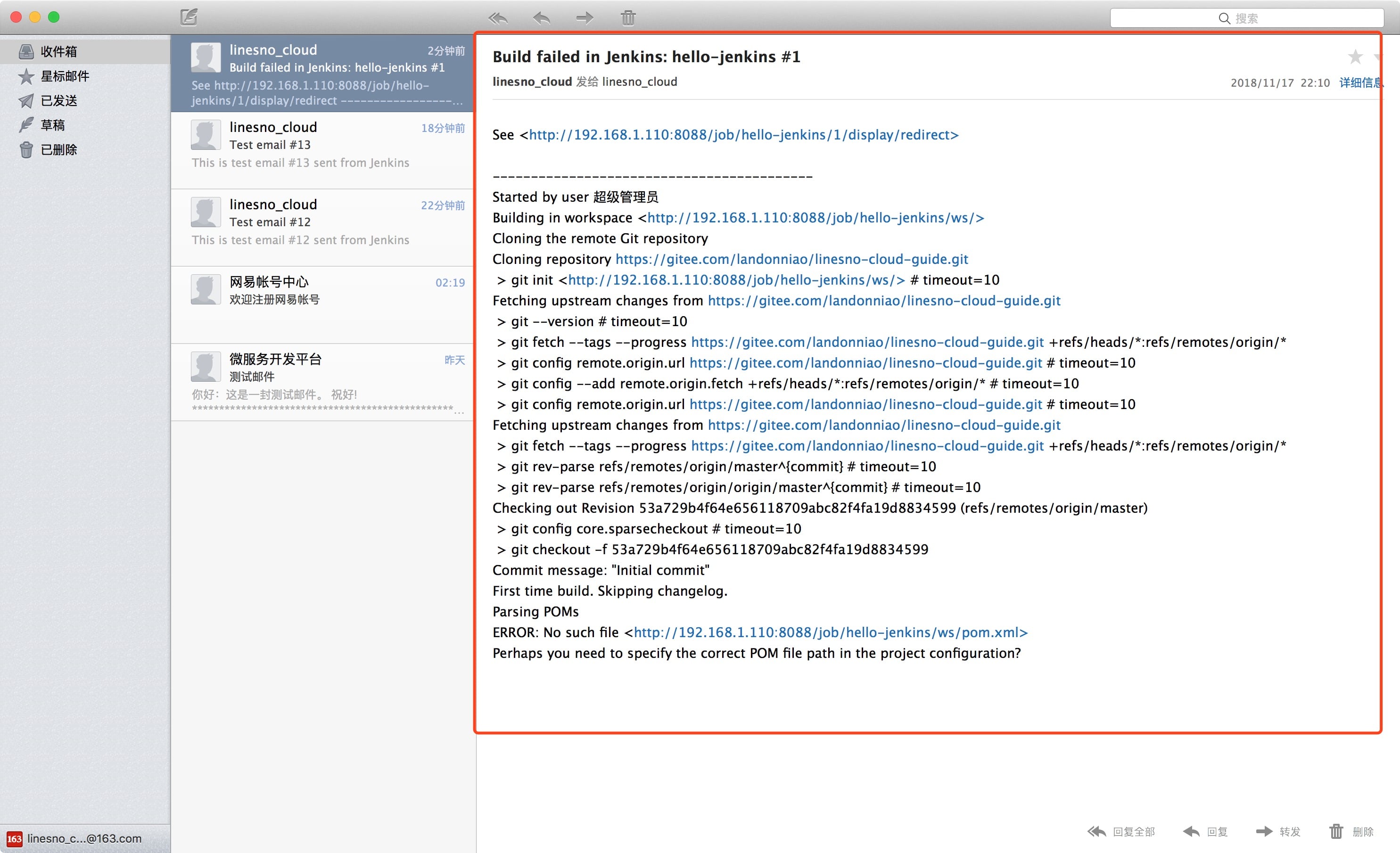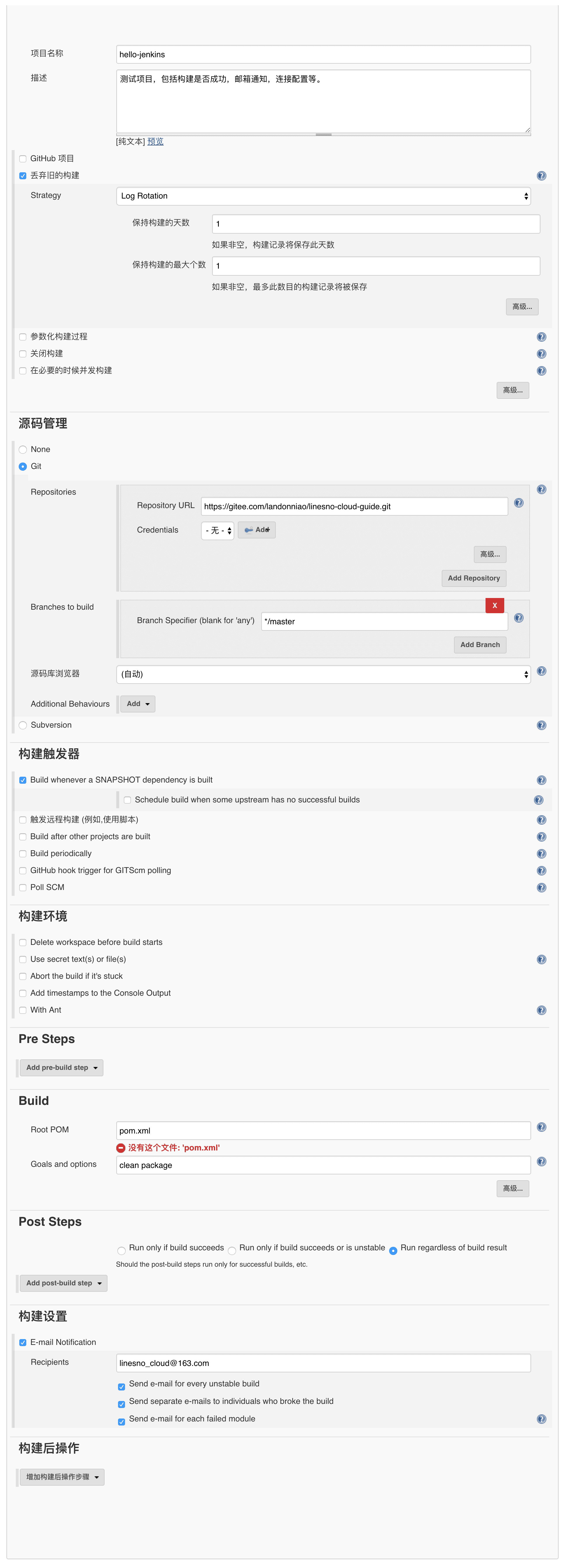 创建 maven 工程,构建完成邮箱提醒,整体配置界面如图: