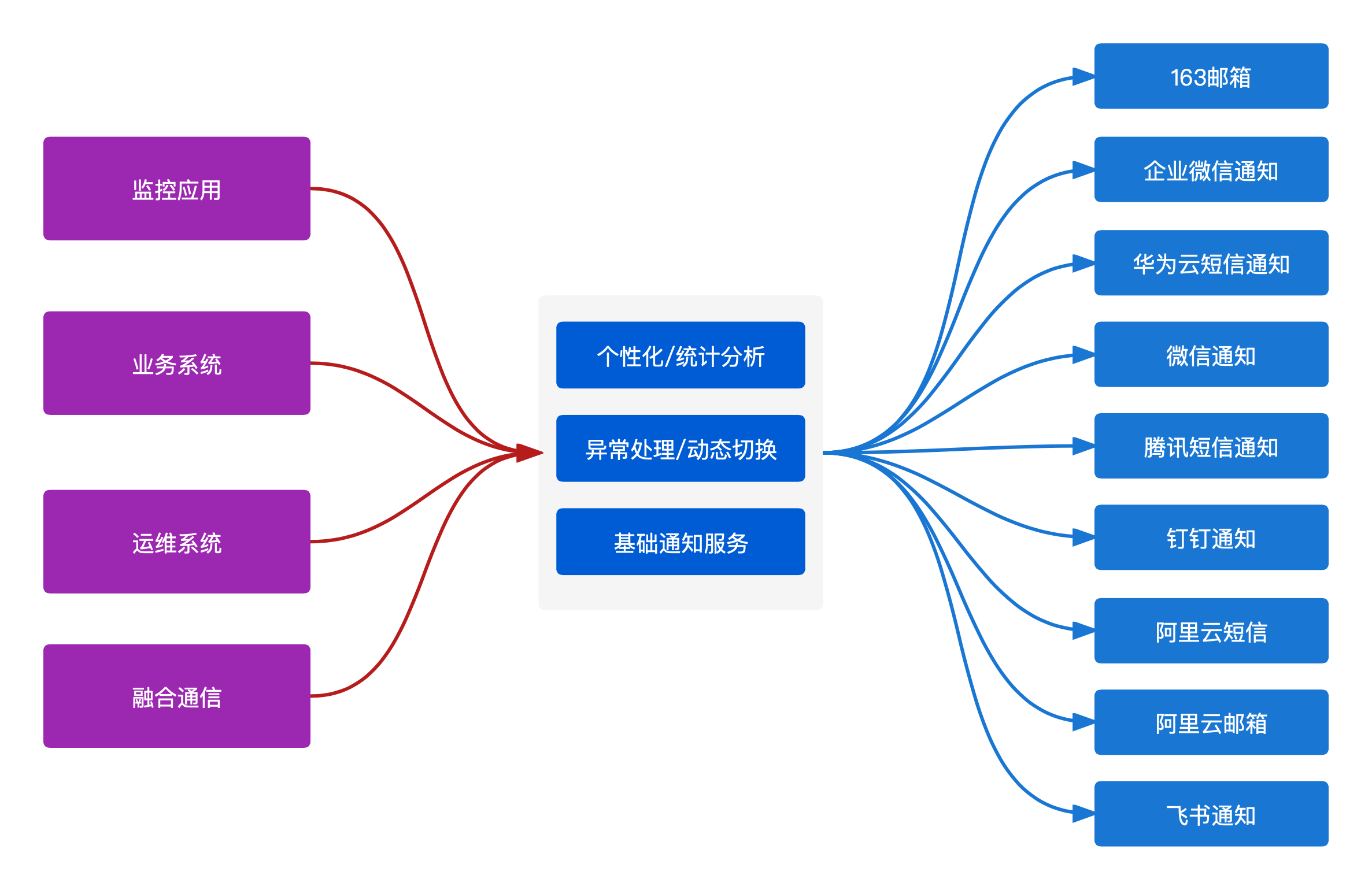 通知服务架构,融合通信通知,包括事件通知服务,工作流通知,运维通知,开会通知,预警通知等, 事件通知服务,工作流通知,运维通知,开会通知,预警通知等。