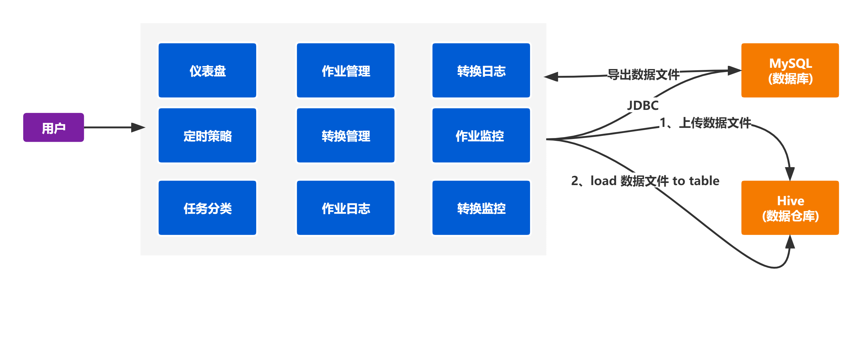 - 转换管理:管理转换任务清单及执行的定时策略