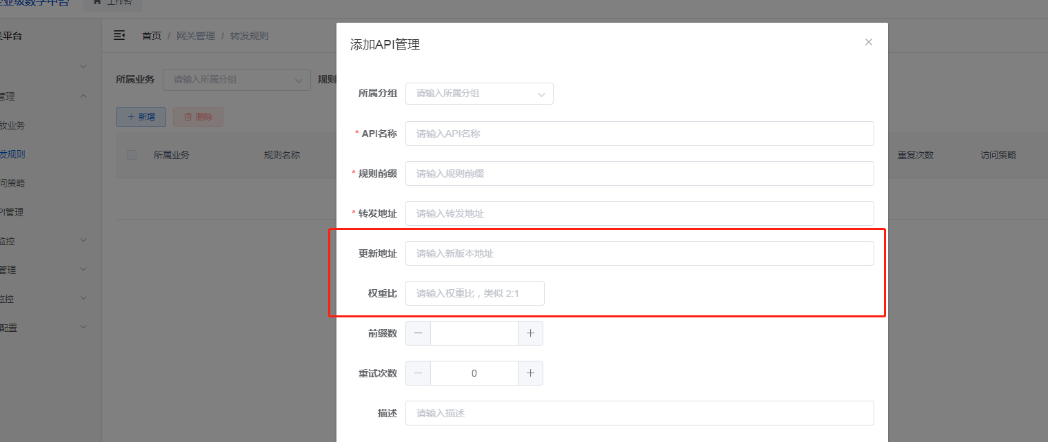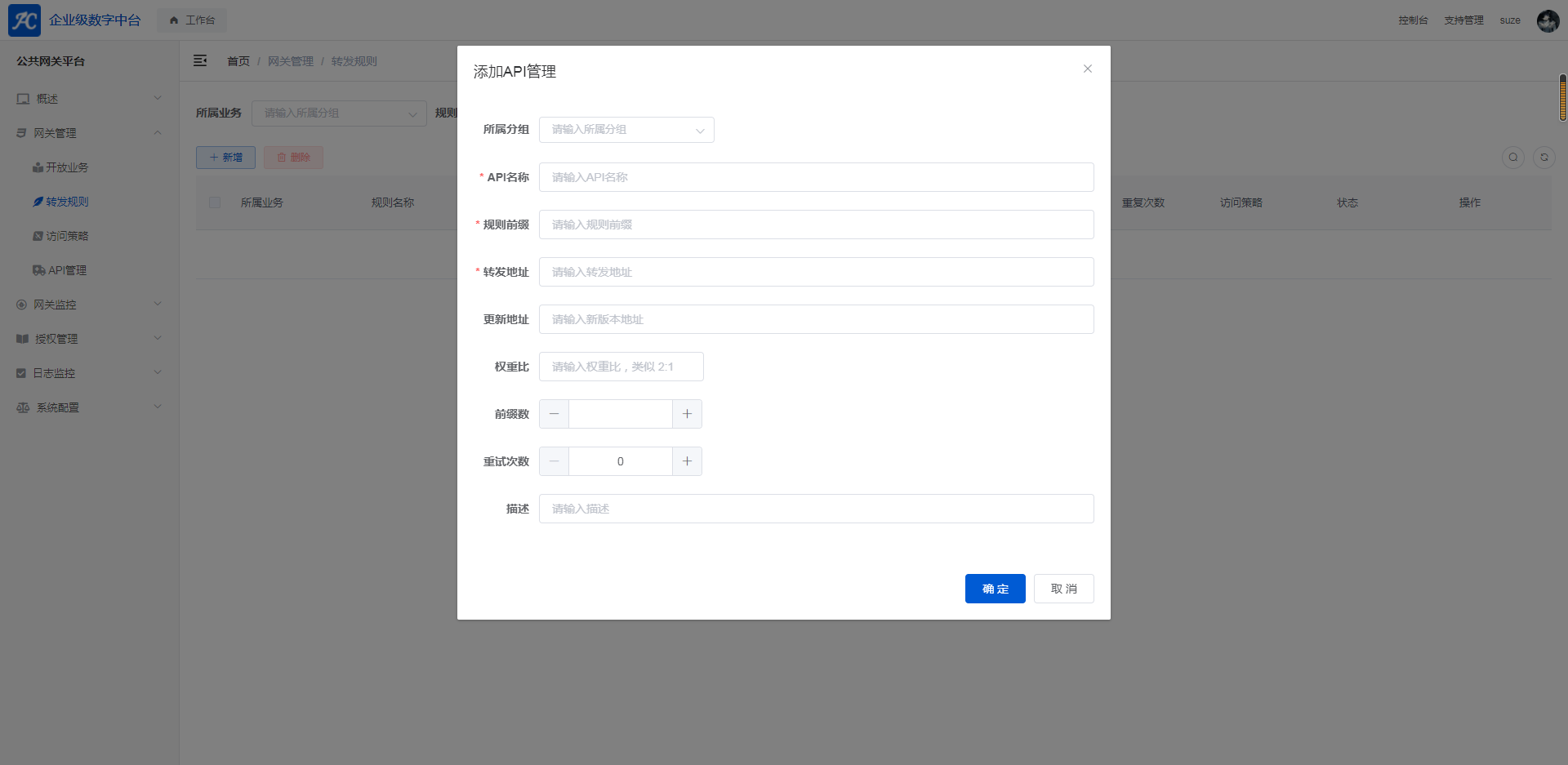 在网关管理平台中导航网关管理>转发规则,此为路由管理页面