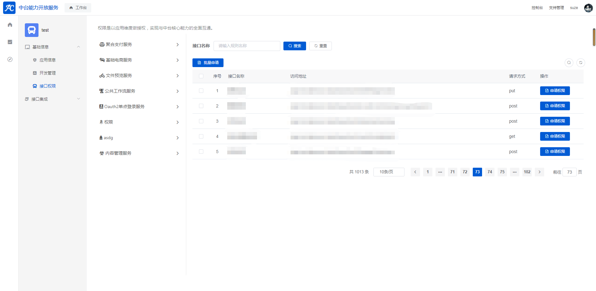 进入应用后,导航基础信息->接口权限,此为接口申请页面